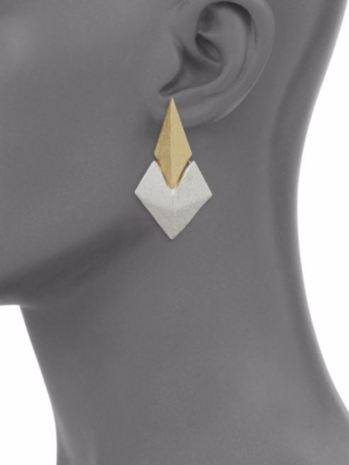 These earrings embody a fashion-as-armor sensibility with steady confidence. Angular, segmented and powerful in appearance, they will flawlessly accent a sharply tailored blazer or add edge to a flowing gown.