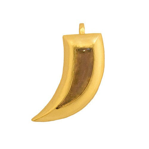 A lavish nod to nature's beauty and civilizations past. This stylized gold plated pendant is both luxurious and intriguing. A pop of color is added to its center with a seamless smoky topaz stone. All of our pendants can be used to customize our signature "S" hook chains.