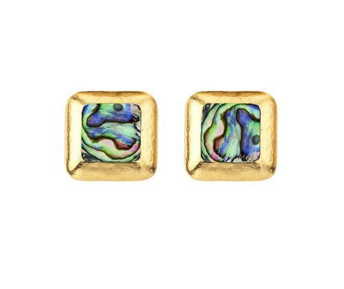 Our polished gold plated square earrings are emblazoned with abalone stones. This covetable set's chic sensibility will transform any outfit you pair it with.