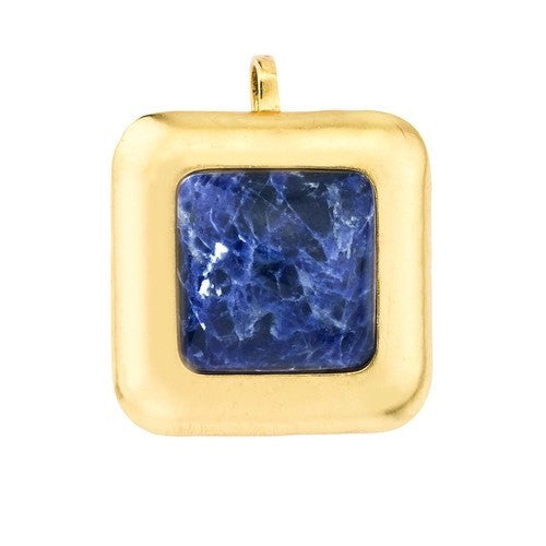 Our polished gold plated square pendant is emblazoned with a blue lapis stone at its center. Its chic sensibility will transform any outfit you pair it with. All of our pendants can be used to customize our signature "S" hook chains.