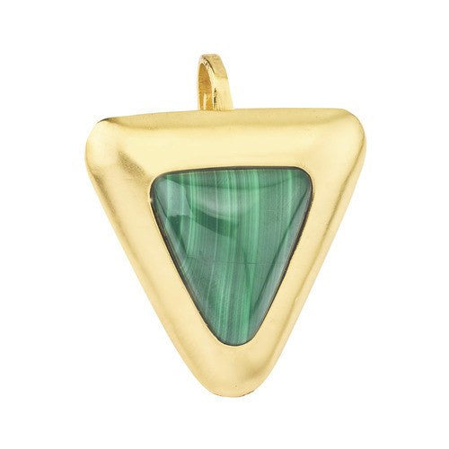 Our polished gold plated arrow pendant is emblazoned with a malachite stone at its center. Its chic sensibility will transform any outfit you pair it with. All of our pendants can be used to customize our signature "S" hook chains.