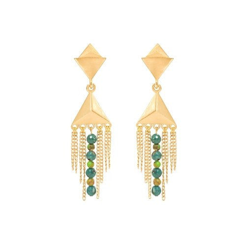 These modern earrings are the meeting point between elegance and edginess. You'll love how they shimmy and sway, reflecting light from chain tassels and petite beads made of turquoise and howlite.