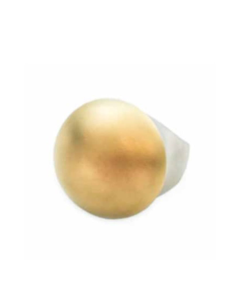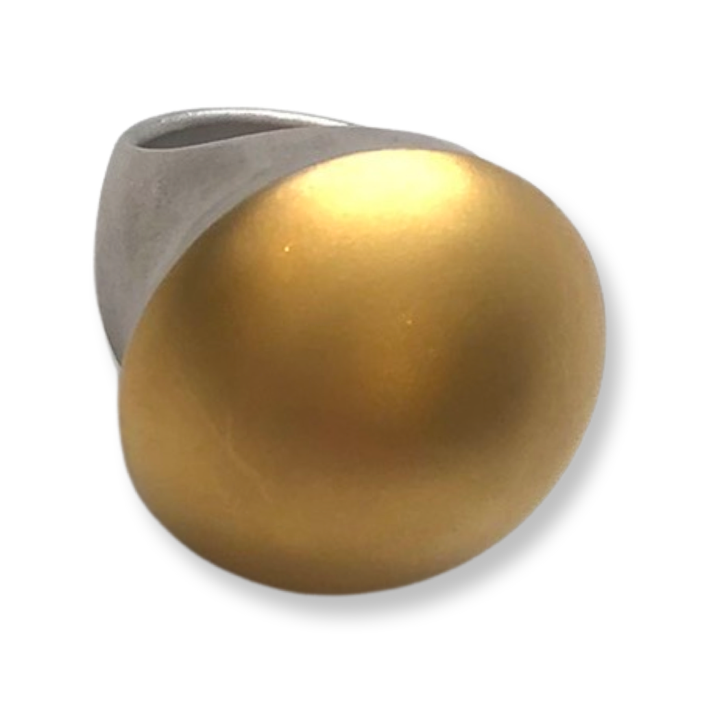 Chic minimalism is captured in this stunning statement ring, featuring beautifully contrasting metals. A thick, bold band of yellow gold creates a solid foundation for the dreamy design to shine.