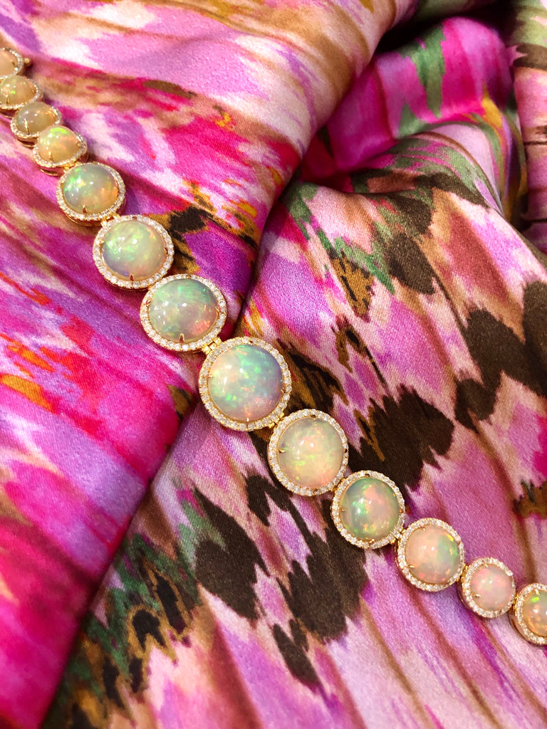 Elevate your jewelry collection with the beautiful Grand Opal bracelet. Crafted from 18K gold and encrusted with shimmering diamonds and deep opals, the bracelet oozes elegance and sophistication. Ideal to wear with any outfit, this exquisite bracelet is sure to turn heads.