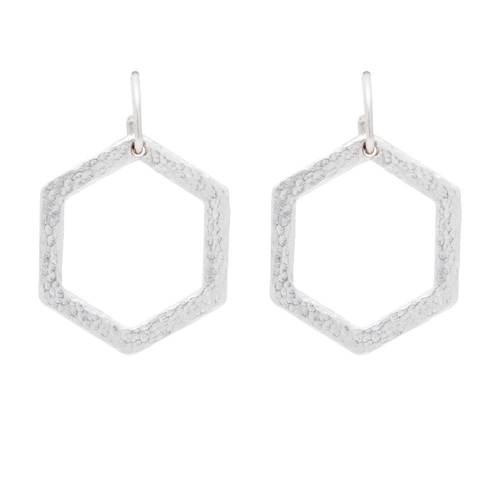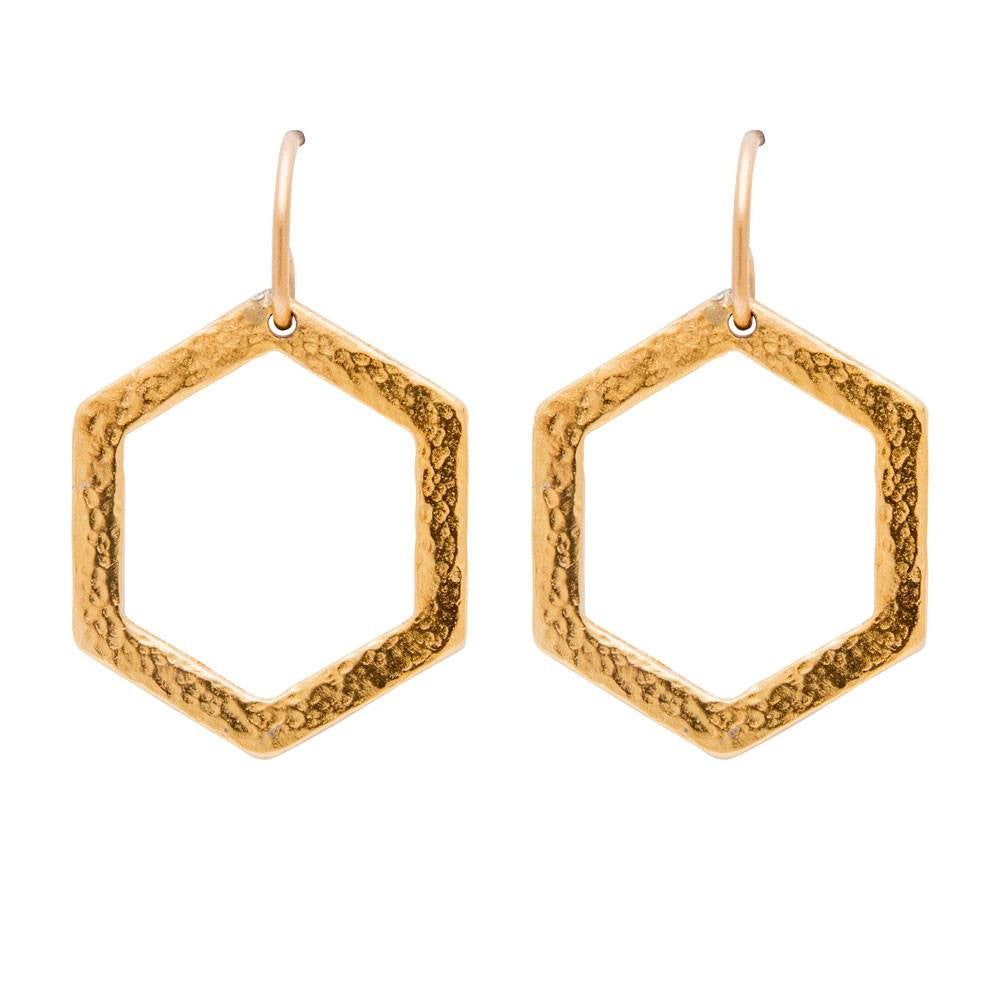 Luxe 24K gold and sterling silver plate is shaped into hexagonal motifs, creating a distinctive minimalist appeal. The mixture of shapes and textures turn this classic style into a modern statement.