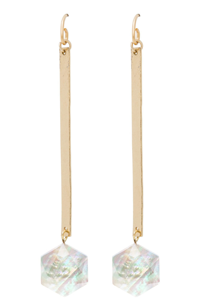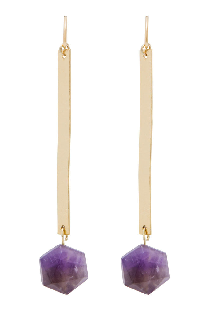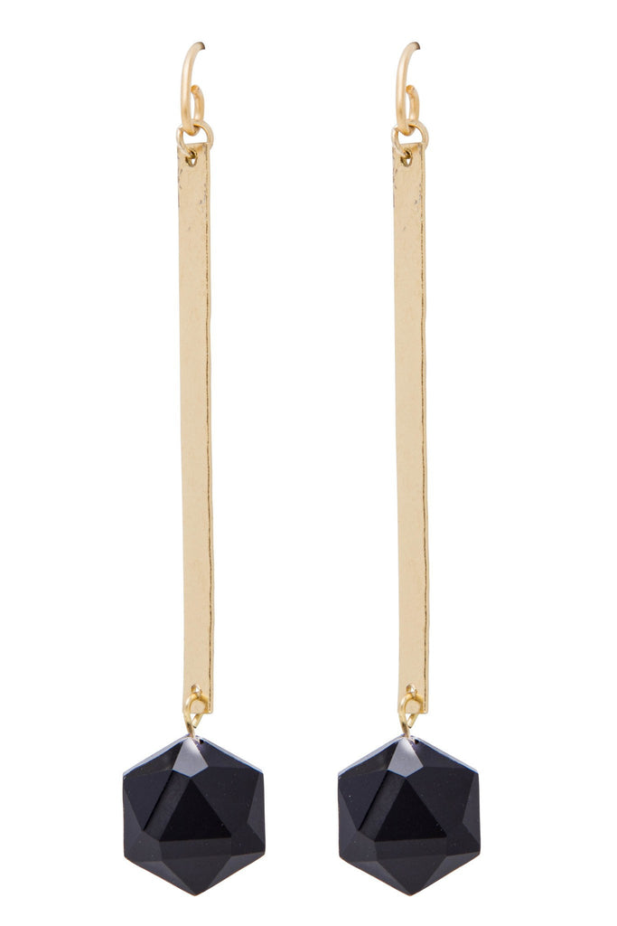 A chic minimal concept, made illustrious. Make an effortless statement with chic slender bar earrings, enhanced by the addition of a luxe faceted stone. They add just the right amount of refinement to an evening look.