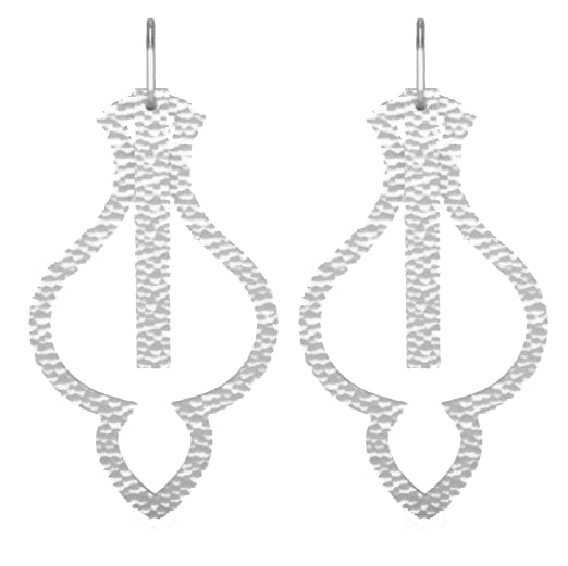 Motifs found in the textiles and architecture of brilliant Marrakech have been translated into this chic minimalist earring. The silhouette is rendered in a textured gold plate, adding effortless jet-set opulence.