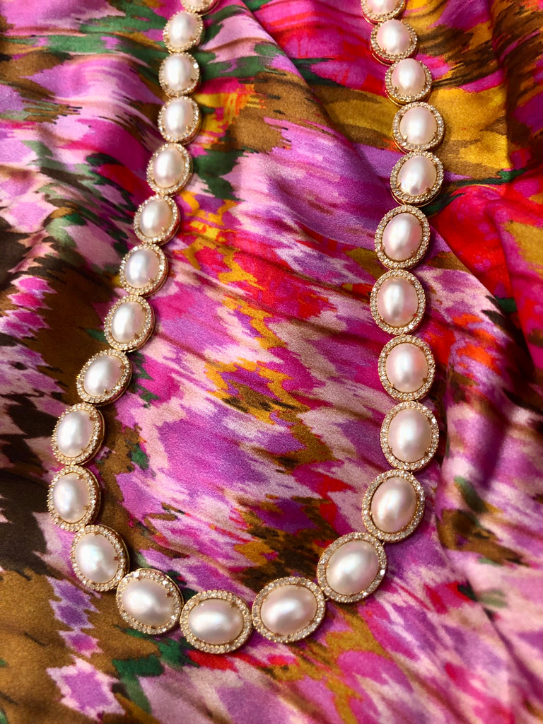 This divine 18K necklace boasts a smooth creamy white pearls, exquisitely set off by dazzling white diamonds. A stunning selection for the discerning jewelry connoisseur, this beautiful piece is your ticket to a look of incomparable refinement.