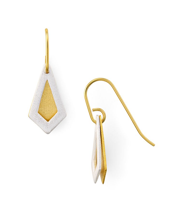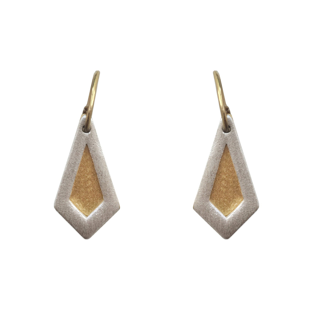 Angular shapes with contrasting metals have been crafted into the perfect set of elegant earrings to add depth and beauty to fall ensembles. A contrast in tone and texture make wearing these bold accents an autumnal treat.