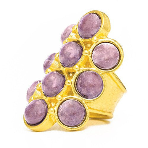 When it's time to go bold, go all the way. This ultra-luxe statement ring holds nothing back in terms of wow-factor. Its design celebrates texture and opulence, featuring a geometric cluster of gemstones set in a 24k gold base. Slide this ring on and you'll be ready for anything.