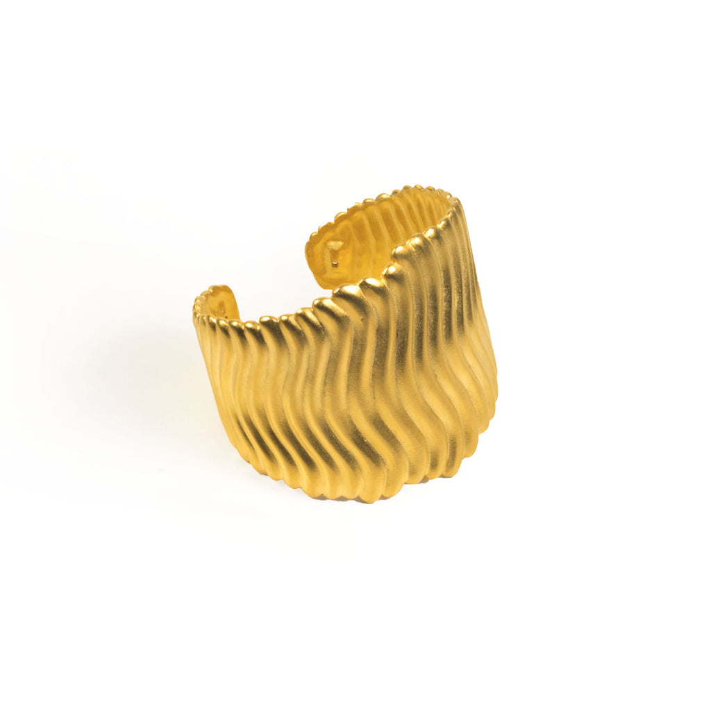 Textured with the essence of movement, lines flow across this cuff bracelet the way the elements flow through a canyon rift. Add this glamorous, elevated accent to a professional or evening look to enrich your very presence in the room. It's flexible enough to bend and mold to your wrist for a comfortable fit.