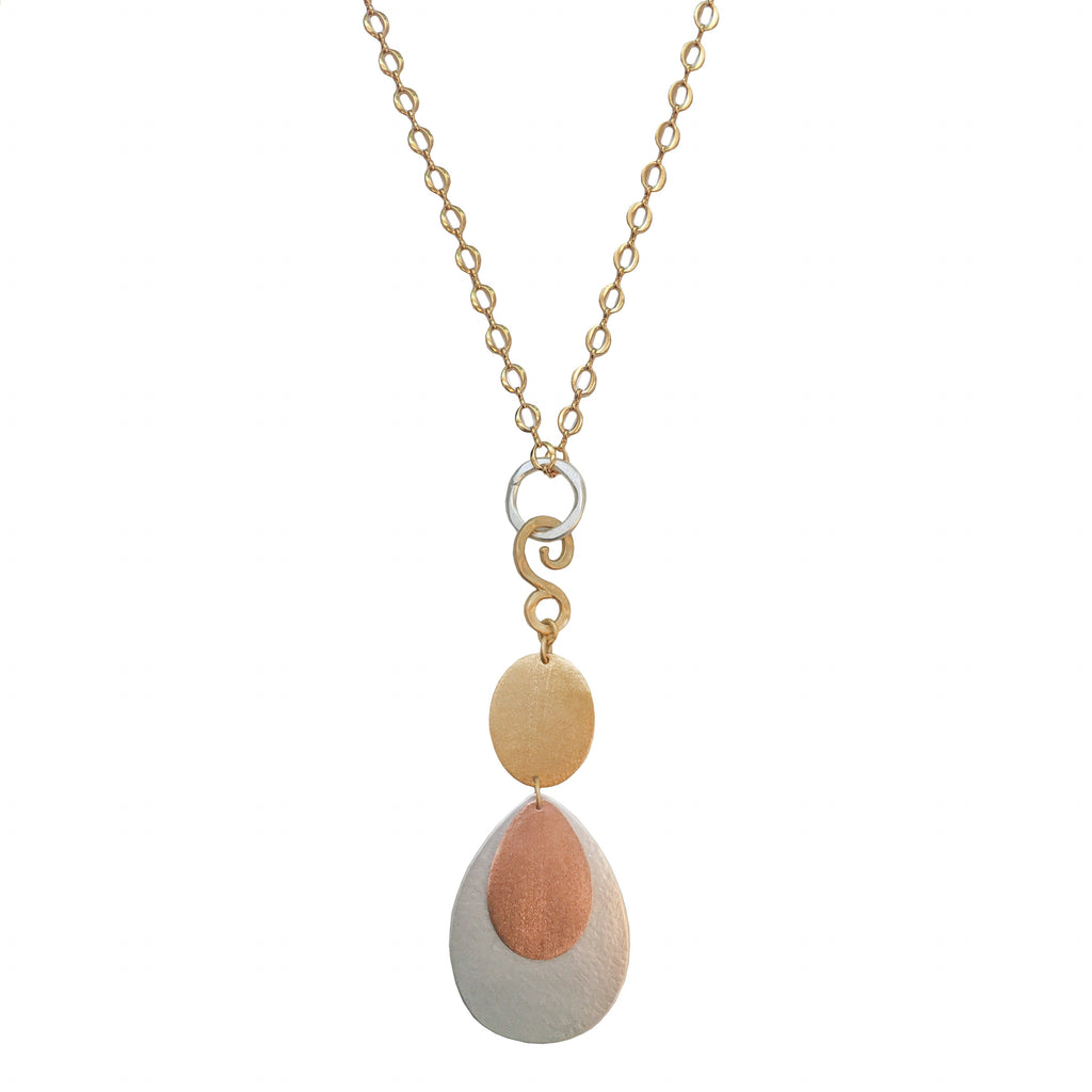 Inspired by the way a chime emits waves of beautiful sounding music, this tri-color necklace features components in yellow gold, rose gold and sterling silver plate. Its vintage-inspired motif has been made wholly modern by a bold design and lush curves.