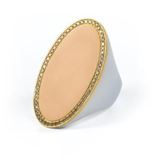 Our signature method of fusing rarely merged metals truly shines in this stunning statement ring. Three metals are combined in the trio of chic hues, including 18K yellow gold and sterling silver. A stunning rose gold "inlay" rounds out the piece.
